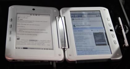 With the Entourage Edge you can have both. We took a hands-on look at this dual-screen reader at the CES 2011 show in Las Vegas. The two screens are connected via a clever hinge that lets you view the screens side by side, or fold them back-to-back to keep the footprint down.